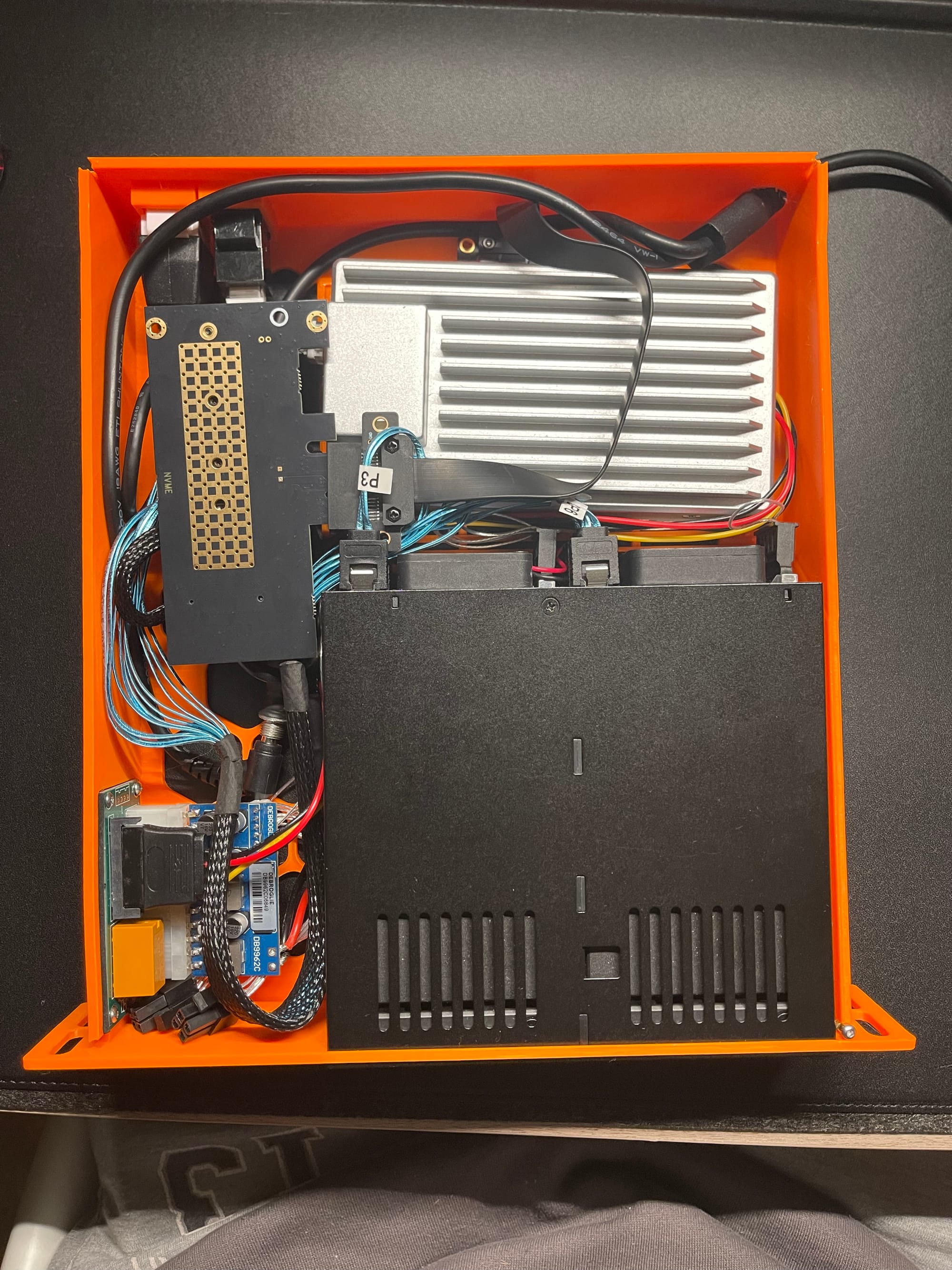 Heat-set inserts were used to cleanly mount the picoPSU/ADD2PSU combo. They also helped secure the lid because the print warped slightly near the end but this was optional. No soldering required.