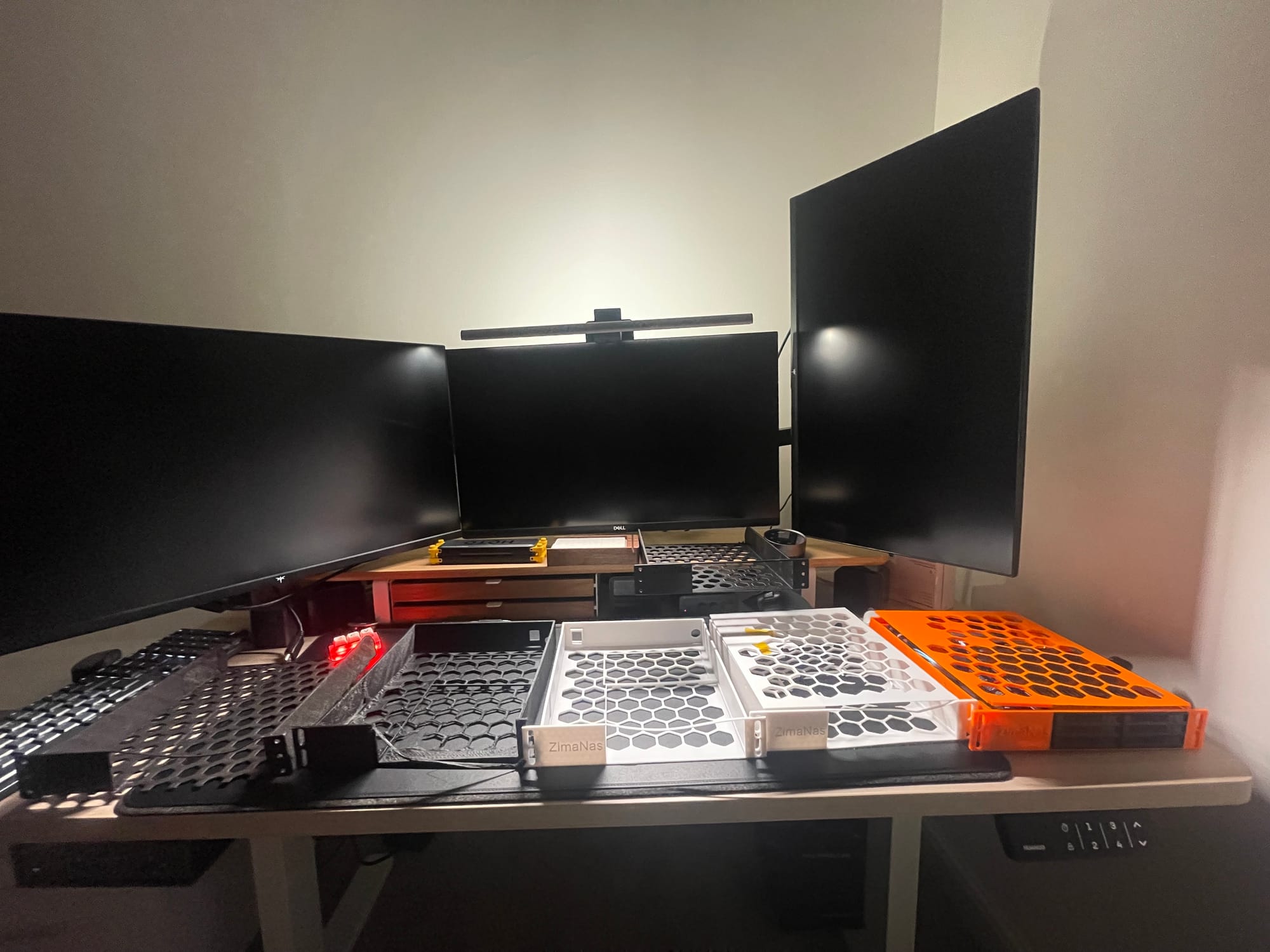 I populated it with six small SSDs (256 GB each) for testing and will gradually upgrade them to 4–8 TB units over time. SSDs make this a lot easier. They're low heat, low vibration and have minimal inrush current. This is one of the reasons the power design works cleanly.