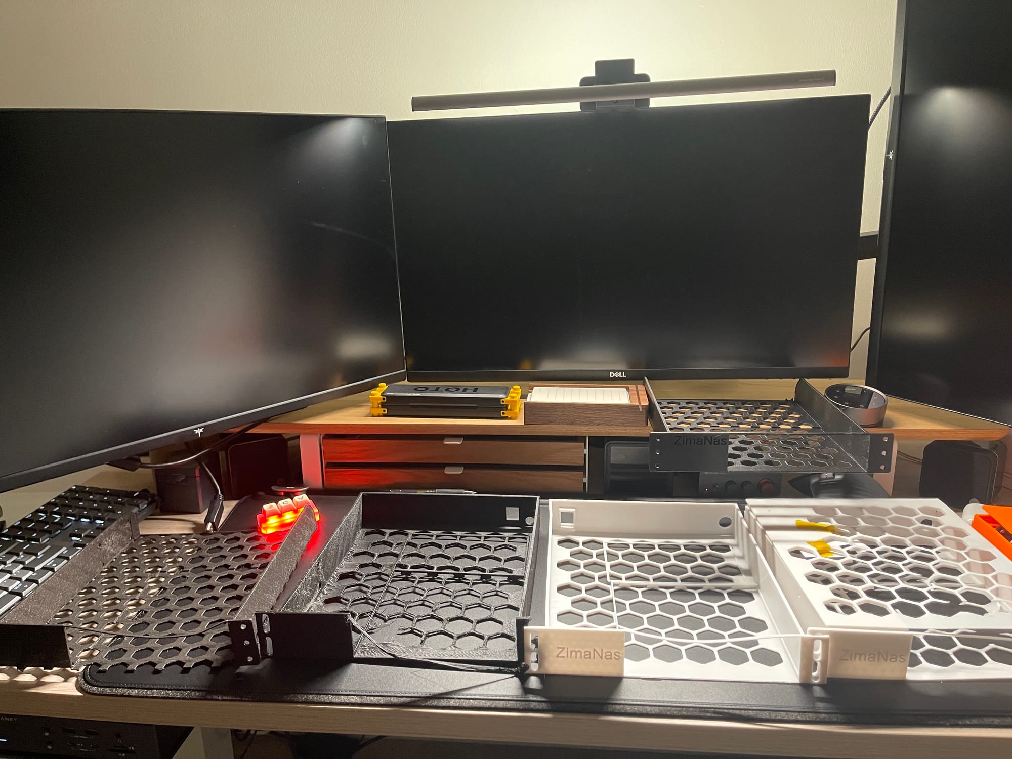 Miscellaneous build photos, I used A LOT of filament on this. You can see where I switched from using a USB keystone to just have 2x Ethernet keystones in the final build.